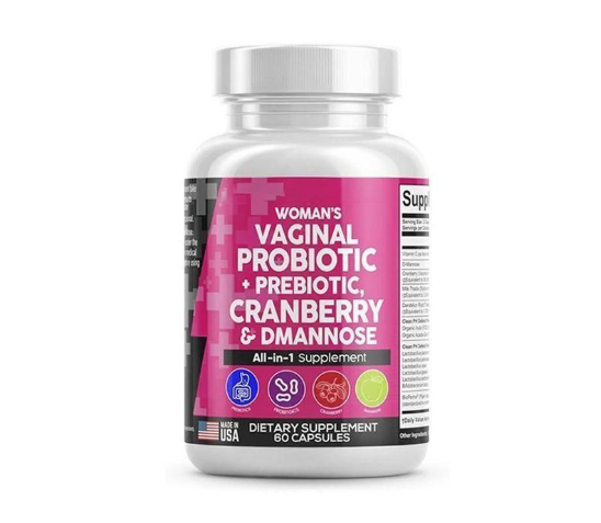 Probiotics Women’s Vaginal Probiotic + Prebiotic, Cranberry & D-Mannose – Intimate Health, pH Balance, UTI & Yeast Support – 60 Capsules All in One Supplement White